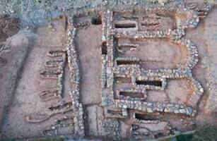 Of the cemetery excavated at the site, 37 pit graves were found, four cists, one tiled-roof grave, and three free burials. All graves were oriented EW, except for one. Most had their cover slabs preserved (usually limestone slabs). All of the graves’ floors were bedrock. Skeletal remains were found in supine position, head to W, sometimes with arms folded. Six graves contained infant burials. Two graves had two consecutive burials, while one had two modern burials. Only four graves contained grave goods (jewellery and buckles). Graves all date to the Middle Byzantine period.