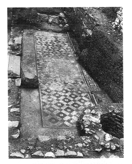 Dans la pièce A, une double porte percée dans le mur Sud ouvre sur une pièce allongée, pavée d'une mosaïque à motifs géométriques (fig. 1) dont on a dégagé une nouvelle portion, décorée de motifs végétaux agrémentés de fleurs et d'oiseaux. L'espace qui s'étend au Nord de cette pièce correspond sans doute à une cour ; sa couche de destruction contenait des tuiles laconiennes, des vases complets et des lambeaux de stucs à décor peint en rouge et bleu. À l'Ouest de la pièce A, les deux pièces Β et Γ, partiellement fouillées, communiquaient entre elles mais pas avec la première ; elles abritaient plusieurs constructions en Π, sans doute postérieures, interprétées comme des foyers.