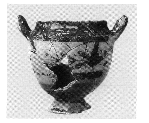 Sur le plateau sommital, on a entrepris la fouille d'un nouveau quartier (Δ), mettant au jour cinq pièces, dont l'une (Δ1), de petite taille, munie d'un escalier extérieur en pierre, s'adossait au parement extérieur du mur d'enceinte ; parmi le matériel recueilli on note une pyxide décorée d'une branche d'olivier (fig. 1).