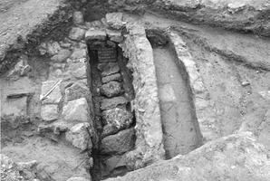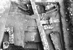 Walls 2 and 5 (Fig. 4) are contemporary to wall 1, which dates to the end of 2nd and the beginning of the 3rd c. AD, based on the collected pottery. A floor was detected in relation to the walls, underneath which pottery discharges covering an older building phase including walls 6, 7 and 8, were found (Fig. 5). These walls, as well as part of a destroyed cobbled floor and three successive, but not contemporary built pipes, date to the Early Roman period (Fig. 6). The oldest pipe extends towards the NE, N of the elongated wall 1 (Fig. 7).