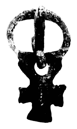 Charchaliana. Quatre autres tombes à ciste ont été fouillées sur la route qui conduit à Kamaréla ; la seule tombe intacte renfermait une sépulture enfantine, une petite œnochoé et une fibule en bronze (fig. 73) de la seconde moitié du VIIe s. ap. J.-C. qui montre que l'île était occupée à l'époque des premières menaces arabes en Egée.