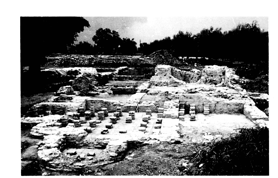 La même année, le Service archéologique a entrepris la fouille de la partie la mieux conservée des thermes romains de Loutra (v. en dernier lieu BCH 123 [1999] Chron., p. 694), mettant au jour quatre pièces, dont le frigidarium et le caldarium à hypocauste, ainsi que deux bassins semi-circulaires à l'extérieur de ces deux pièces (fig. 81). Le matériel recueilli témoigne de l'utilisation des thermes à la fin de l'époque romaine et au début de l'époque paléochrétienne (IIe-VIe s. ap. J.-C). AD 51 (1996) [2001] Β'1, p. 191 [O. Vikatou].