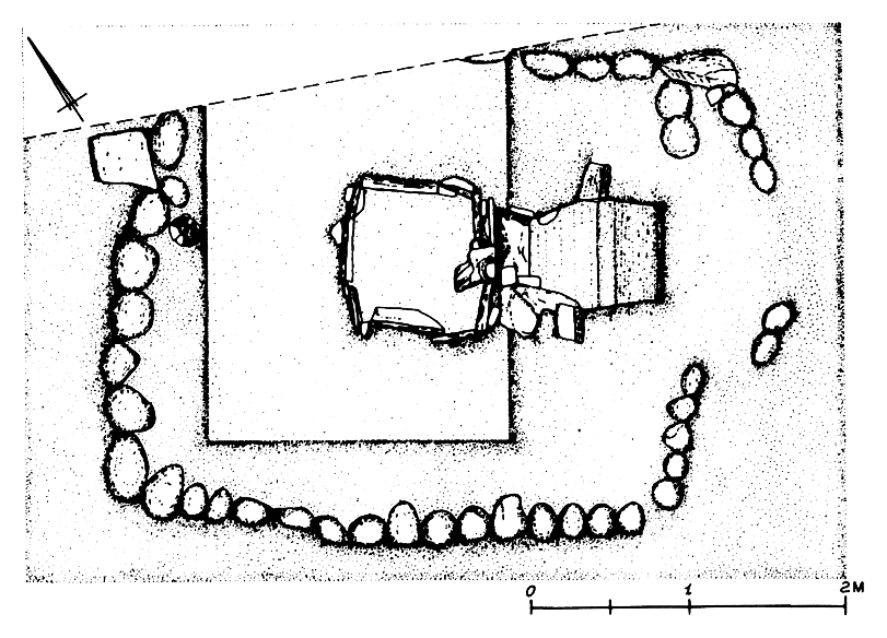 Pour la troisième année consécutive, M. Pantélidou-Gofa a exploré, en 1999, la nécropole cycladique de Tsépi (v. BCH 123 [1999] Chron., p. 661-663), dégageant deux nouvelles tombes (3 et 33) et un dépôt de vases. La fouille de la tombe 3 a montré que celle-ci présentait deux phases : la petite ciste initiale fut transformée, lors d'une nouvelle inhumation, en tombe à vestibule et entrée latérale (fig. 1). Dans la tombe 33, partiellement fouillée par S. Marinatos, le vestibule abritait un défunt qui n'avait sans doute pas pu être enterré à l'intérieur de la tombe à cause de l'écroulement du linteau, bien que celle-ci eût été préparée pour le recevoir (fig. 2).