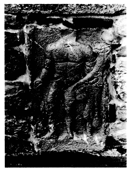 En 1995 on a repéré, remployé dans un mur de l'église Saint-Athanase, un relief en calcaire d'époque romaine qui représente Héraklès (fig. 1). La même église renfermait aussi trois fragments architectoniques provenant du temple classique de l'Héraion. L'église actuelle, construite en 1901, a vraisemblablement remployé les blocs de l'ancienne église homonyme, aujourd'hui détruite.