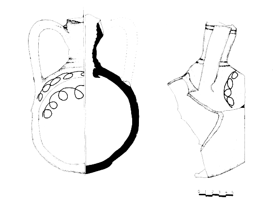 Terrain Vénizélou. L'achèvement de l'exploration de ce terrain (fig. 117) situé au Nord de la colline d'Amphion, aux confins du quartier de Pyri, a permis de vérifier les séquences chronologiques déjà établies lors de la première campagne (v. BCH 124 [2000] Chron., p. 866). Nous reproduisons le dessin d'un récipient destiné au transport sur des bêtes de somme (askodavla) de la fin du XIe s. ou du début du ΧΙIe s. (fig. 118). Notons aussi la trouvaille de fragments de récipients de cuisine de dimensions variées en serpentine originaire des vallées des Alpes.