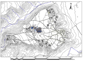 Sur le plateau Nord, entre la muraille et la zone habitée, une bande libre de toute construction devait correspondre à un chemin périphérique ; au-delà l’occupation était sporadique, avec des habitations au milieu de zones cultivées. À mesure, toutefois, que l’on approche du village actuel les traces d’occupation s’intensifient (7 puits repérés en 2005), y compris pour l’époque byzantine, et avec elles les trouvailles intéressantes (enduits de mur peints, scories…, un fragment de colonne dorique abandonné là par un engin mécanique).
