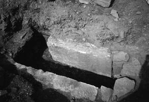Property of Emm. Kassotakis, Lyttos. Maria Mavraki Balanou (ΚΓ’ ΕΠΚΑ) reports that at the E of the archaeological site of Ancient Lyttos, a large grave slab (1x0.45m) was discovered laying on the ground, at the site of Koutsoulocharako. A single day salvage excavation followed. The grave slab was larger than those which were covering a cist grave laterally (Fig. 1). The rest of the slabs have fallen in the opening of the grave and were disturbed from a previous looting or due to ploughing. The alignment of the grave was almost N-S and it was almost empty. Only three lamp handles and one of a dipper were collected, along with a few scattered bones. The existence of a small square niche at the NE corner of the grave is of interest. Inside it, the bones of two skeletons were carefully arranged, with the long bones found at the base and the smaller bones as well as the skulls placed on top of them. The bones were covered with a small flat slab and a square Roman tile with carved grooves, which has been broken, potentially due to the movement of the materials. The crypt was found undisturbed. Along with the skeletal remains, fragments of a broken glass vessel and of a bone fibula were also collected.