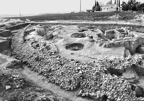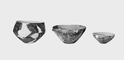 - dans la troisième phase, l’habitat s’étend au-delà du fossé ainsi comblé et est entouré par deux nouveaux fossés B et Γ. Les vestiges architecturaux sont très mal conservés ; en revanche, de nombreuses fosses ont été découvertes, ainsi que des inhumations, situées à proximité ou dans le fossé. De la céramique peinte est associée à cette phase (noir sur fond rouge ou brun sur fond brun clair).