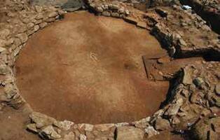 80 square metres of the Late Hellenistic edifice at Agia Paraskevi were excavated illuminating our understanding of the building and uncovering some finds. The building’s narrow eastern side has dimensions c. 45 x 11m, and most rooms are ordered in two rows and separated by a longitudinal wall on an E/W orientation (Fig. 1). Archaeological works were undertaken in Rooms 1, 2, 3, 4 and 7; these last two are now fully-excavated. Room 1, a circular room with a ceramic floor in a mosaic pattern (Fig. 2), and Room 4, that contained an oven, were found to be connected via a bathing installation. The former room’s ceramic floor and sewage system is comparable to Gortyna of Arkadia’s Room G, and the latter room’s oven alludes to a pretty similar oven in a bath at Olympia. The oven was supplied via Room 2 (rectangular shape, 4.80 x 6.20m), and Room 7 was measured 3.20 x 5.00m.