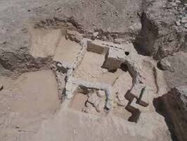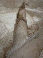 A trench spotted nearby the aforementioned site contained a Mycenean layer (Fig. 3), in which three pseudo-mouth amphorae and an alabastro were found. Above that, some vertically placed poroliths are interpreted as covering slabs of a burial pit. The pit was located in a lower layer.