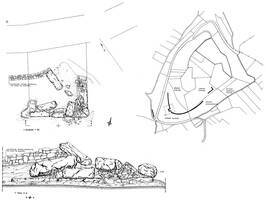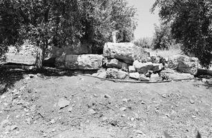 A rectangular tower was investigated in this area (Fig. 1 Fig. 2, Fig. 3). Its S side has length 6.50m, and the E side 4.60m. Many large bricks had fallen around the structure. In the NE of the tower, it is likely that there was a gate. Also at this property, in the olive grove, many foundations of ancient buildings were recorded. Pottery of the late Classical and Hellenistic periods was collected. An ancient quarry was visible near this property (Fig. 4).