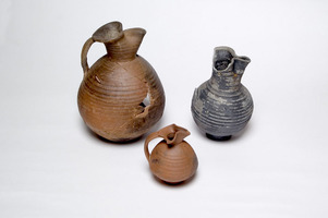 La fouille du terrain Boliou, à Thèbes de Phthiotide, a livré des vestiges d’édifices et 103 tombes à tuiles, deux tombes à ciste recouvertes de plaques et 44 amphores funéraires à fond pointu (fig. 1-2). Il s’agit d’inhumations d’adultes et d’enfants. – Le mobilier recueilli compte des monnaies de bronze, des anneaux et des fibules de bronze (fig. 3), un collier en or (fig. 4), des perles et des vases en verre, ainsi qu’une abondante céramique protobyzantine (fig. 5-6).