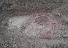 - An eight and a half metres long stone pipe (N-S) was located (Fig. 1), integrated within the natural rock. On top of the stone plinth construction covering the pipe, excavations revealed a well, one stone paved construction and one Π shaped construction, all dating in Early Byzantine times. One layer, consisting of a large quantity of Hellenistic times pottery was considered a terminus post quem for the dating of the stone pipe. The modern pipe passed on top of the ancient one (20 centimetres higher), and the antiquities were buried for protection.