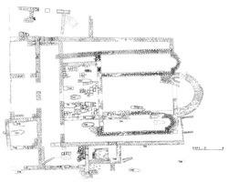 Le dégagement de la couche de destruction a permis de mettre au jour le photistérion, dont l’entrée était orientée vers le baptistère, ainsi qu’une autre construction. Le sol du narthex n’était pas conservé sous cette couche, mais on signale des monnaies datées de Constant (337-361) à Zénon (474-491).