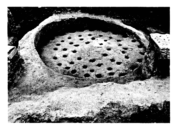 4) Nécropole. — Un groupe de dix tombes en fosse et une sépulture en jarre tardo-hellénistiques ont été dégagés au Sud des tumuli préhistoriques ; leur organisation et leur nombre limité suggèrent qu'elles ne faisaient pas partie d'une vaste nécropole mais appartenaient plutôt à une famille de notables. Les défunts étaient accompagnés de trois à huit vases, dont plusieurs « salières » d'une forme particulière ; trois sépultures féminines contenaient en outre des bijoux en or et en argent.