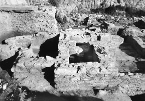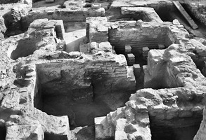 Dans le cadre des travaux d'extension du musée archéologique de Volos, à la suite des fouilles de la XIIIe éphorie des antiquités préhistoriques et classiques en 1999, la 7e éphorie des antiquités byzantines a mis au jour un ensemble thermal d'époque protobyzantine (fig. 1). De ce dernier, on a dégagé le caldarium, constitué de trois pièces avec des hypocaustes (les piliers sont conservés dans l’une des pièces), et deux pièces avec des bains (une pièce rectangulaire et une abside à l’Ouest), dont les murs sont revêtus de plaques de marbre (fig. 2-3). Au Nord des pièces à hypocaustes, on a dégagé une sorte de vestibule, avec un sol dallé de plaques de terre cuite. – D’autres murs, délimitant trois pièces, et des bases en marbre pour des colonnes appartiendraient également à l’ensemble thermal.