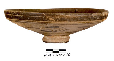 De la tombe MMA 632 provient un bol profond, d’un type rare, décoré de rameaux d’olivier (MMA 632/10 ; haut. 7,1 cm ; diam. 16,7 cm ; fig. 5 et 6).