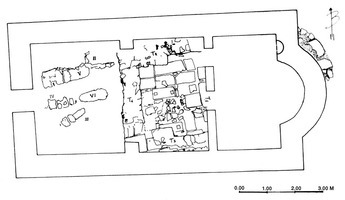 Lors de travaux de restauration du sol de l’église d'Aghios Ioannis Théologos à Tirthoréa, trois phases antérieures ont été mises au jour :