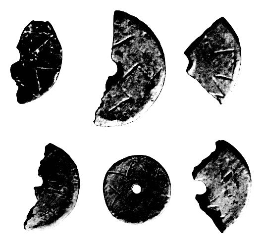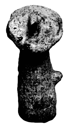 2) Sur la colline de Palla Rachi, à 3 km au Sud-Est d'Aiani, où un site préhistorique avait été repéré en 1987, une série de sondages a mis au jour des vestiges appartenant à un petit habitat occupé du NM au BA : soubassements de murs en pierre, trous de poteaux, masses de terre à bâtir avec empreintes de branchages. Parmi le matériel recueilli on note la présence de céramique du type de Servia (à décor incisé) et du type de Dimini, deux figurines dont l'une rappelle les idoles cycladiques (fig. 1), trois fragments de sceaux en terre cuite à motifs géométriques, des pesons de fuseau à décor incisé (fig. 2) et un abondant outillage lithique.
