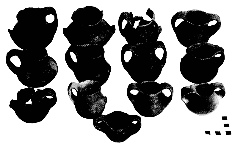 La fouille du vaste cimetière de la fin du BA exploré depuis 1995 au lieu-dit Xéropigado (v. BCH 122 [1998] Chron., p. 848 [Chronique n.12703]) à l'occasion des travaux de la « voie Egnatia », a été achevée en 1998. L'extension de la fouille vers le Nord a permis la découverte de quarante-deux nouvelles tombes, ce qui porte leur nombre total à plus de deux cents et la superficie de la nécropole — dont les limites ont pu être reconnues — à 1 550 m2. Recouvertes pour la plupart de tas de pierres, elles appartiennent aux divers types déjà connus : fosses ovales à entourage de pierres surtout, mais aussi quelques cistes construites (fig. 1) et, plus rares, de simples fosses, des cistes à parois doublées de dalles et des sépultures en jarre — types surtout caractéristiques du BM dans le bassin égéen. Toutes ces tombes sont individuelles, d'orientation plus ou moins constante (Nord-Sud), et les défunts y sont inhumés en position contractée. Environ 30 % d'entre elles (sépultures de femmes et d'enfants pour l'essentiel) étaient dépourvues de mobilier ; les autres renfermaient en général un ou deux petits vases (fig. 2), souvent usagés, et très exceptionnellement des bijoux ou des armes. On note la présence de fils de tissu en lin sur un couteau en bronze. Les datations obtenues par 14C sur prélèvements de collagène, au laboratoire du centre Dimokritos, indiquent que la nécropole fut en usage entre 2453-2353 et 1936-1885 av. J.-C.