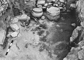 - on signale que le mur Nord forme une conque rectangulaire dans la pièce 3, où trois vases ont été découverts en place.