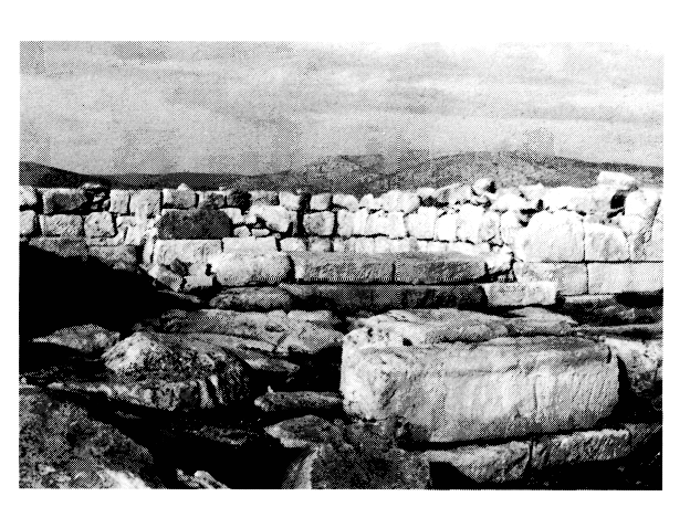 Sur la colline du Prophète Élie, des travaux de nettoyage et d'aménagement ont été effectués par le Service archéologique au temple d'Athéna (fig. 184) et dans les maisons antiques. AD 50 (1995) [2000] B'2, p. 688 [A. Archontidou] ; Συμβολή Υπουργείου Αιγαίου, p. 26 [A. Archontidou].