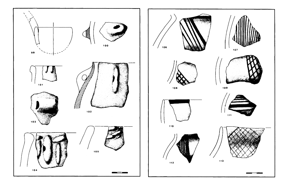 Des sondages effectués en 1985 à ce lieu-dit situé à 3 km à l'Est d'Érétrie, près de l'établissement préhistorique de Magoula (v. BCH 117 [1993] Chron., p. 876), ont mis au jour un site du NA II. Sa faible étendue et l'absence de constructions plaident en faveur d'un habitat saisonnier, probablement un campement hivernal pour les éleveurs qui, l'été, montaient dans la région de Théologos où l'on a fouillé un site de la même période. La céramique comprend surtout des vases non décorés (86 %), monochromes (14 %) et très peu à décor peint (fig. 200-201) ; parmi les formes prédominent les bols à parois verticales ou en S et les vases fermés à col court. AAA 29-31 (1996-1998) [2000], p. 79-86 [A. Sampson].