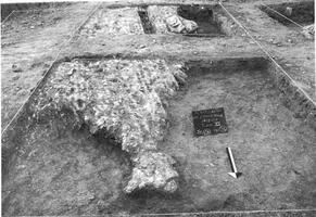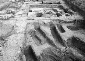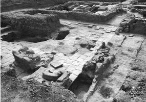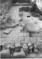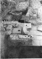 During the Early Roman period the cemetery was backfilled and later the Roman settlement complex, of whom a large room with a tile floor (Fig. 6) was almost completely excavated. Two atria and parts of four other rooms were also excavated. At the NE corner of the first room, a small arched structure made of bricks with a perforated marble block in the interior, potentially serving as a statue base, was found (Fig. 7); this is potentially a small nymphaeum. A destruction layer with tiles and building material deriving from the abandonment of the building, probably after the earthquake of 365 AD, was also excavated in the room. The discovery of a brick wall with opus testaceum at the façade (Fig. 8), that has collapsed above the destruction layer is noteworthy. West of the room with the nymphaeum, an atrium with a pebbled floor defined by three walls (Fig. 9) and a road leading to other rooms towards the N was located. On top of the fill of the rooms, an Early Christian drain was also discovered. Early Roman pottery was collected from the interior of a well (1.10 m.) carved in the datum, at the NW part of the plot, which was potentially related either to the erection of the Roman house or the Hellenistic cemetery.