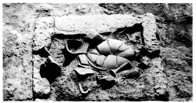 En 1995, on a poursuivi l'exploration de ce vaste site hellénistique (v. BCH 123 [1999] Chron., p. 816), mettant au jour de nouvelles pièces de maisons et progressant dans la compréhension du plan urbain. L'une des « pièces » semble être une tour de l'enceinte ; à l'intérieur on a trouvé une série de timbres amphoriques. Une autre pièce abritait une eschara (fig. 274) renfermant deux grands unguentaria ; elle a notamment livré un moule en terre cuite (visage féminin), un petit plateau décoré d'une fleur gravée (fig. 275) et une balle de fronde inscrite (Διός). Une vaste pièce allongée était munie d'un pilier central et d'une entrée d'aspect monumental. Parmi les trouvailles signalons encore un vase à bec (fig. 276) et trois monnaies de bronze dont deux de Chersonèse et une de Lyttos. AD 50 (1995) [2000] B'2, p. 749-750 [N. Papadakis].