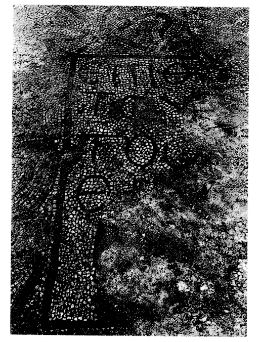 Dans la nef centrale, l'enlèvement de la couche d'effondrement a permis de retrouver, à l'Ouest de l'ambon, de nombreux blocs enduits à décor polychrome (bandes parallèles, motifs végétaux). On a également mis au jour un nouveau lambeau du pavement de mosaïque primitif, dont le décor s'organise en grands tableaux répartis de part et d'autre d'un « couloir » central (motifs géométriques, représentations animales et végétales stylisées). Ce pavement présente de nombreuses restaurations, qui attestent de sa longévité. Dans sa partie Sud-Ouest, à l'entrée de la nef, subsistent les restes d'une inscription de quatre lignes qui pourrait bien être la dédicace (fig. 1).