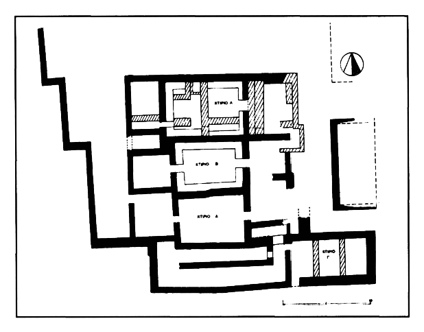 Un ensemble d'objets a été trouvé, en 1995, dans une pièce de ce complexe : deux vases de forme particulière, qui avaient peut-être une destination cultuelle (thymiatéria), ainsi que plusieurs plaquettes en terre cuite décorées en relief* (notamment une figure féminine casquée et vêtue du péplos, qui est sans doute Athéna). Au pied de la colline, des vestiges de constructions classiques et romaines ont été découverts.