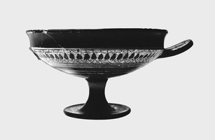 - les cinq tombes anciennes (trois tombes à ciste et deux tombes à fosse) sont datées entre la fin du VIe s. et le premier quart du Ve s. av. J.-C., d’après le mobilier contenu dans quatre des tombes : coupes et lécythes d’origine attique et thasienne (fig. 1), bijoux en bronze et en or, ceintures en fer et une monnaie.