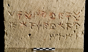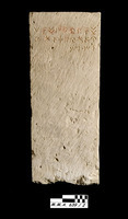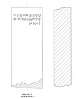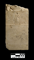 - Deux autres stèles funéraires, en calcaire, portent une inscription en écriture chypro-syllabique. Nous présentons ici la stèle MMA 639/2 (haut. 14 cm ; long. 68,5 cm ; fig. 2-4) : des traces de pourpre subsistent dans le creux des signes gravés.