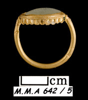 De la même tombe provient une bague en or dont le chaton est peut-être en cristal de roche (MMA 642/ ?; diam. 2,3 cm ; fig. 7).