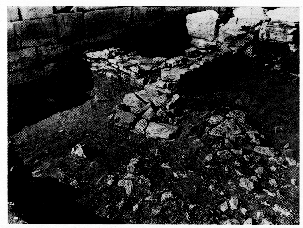 En 1998, X. Arapoyanni a achevé la fouille du temple d'Athéna et Zeus Sôter (v. BCH 122 [1998] Chron., p. 779), pratiquant plusieurs sondages sous le niveau du sol du temple : dans l'angle Nord-Est de la cella, la fouille a très vite atteint un sol plus ancien, peut-être archaïque ; derrière la base de la statue de culte, de même qu'à l'extérieur du temple au Nord, de nouveaux vestiges de constructions HM (fig. 53). Le côté Sud du monument a été entièrement dégagé : les terres du remblai contenaient de la céramique d'époque classique ainsi qu'une grande quantité de tuiles, dont certaines estampillées Φιγαλέων Δαμόσιος. Un nettoyage a permis de préciser l'étendue du dallage précédant l'entrée. Ergon 45 (1998), p. 51-53.