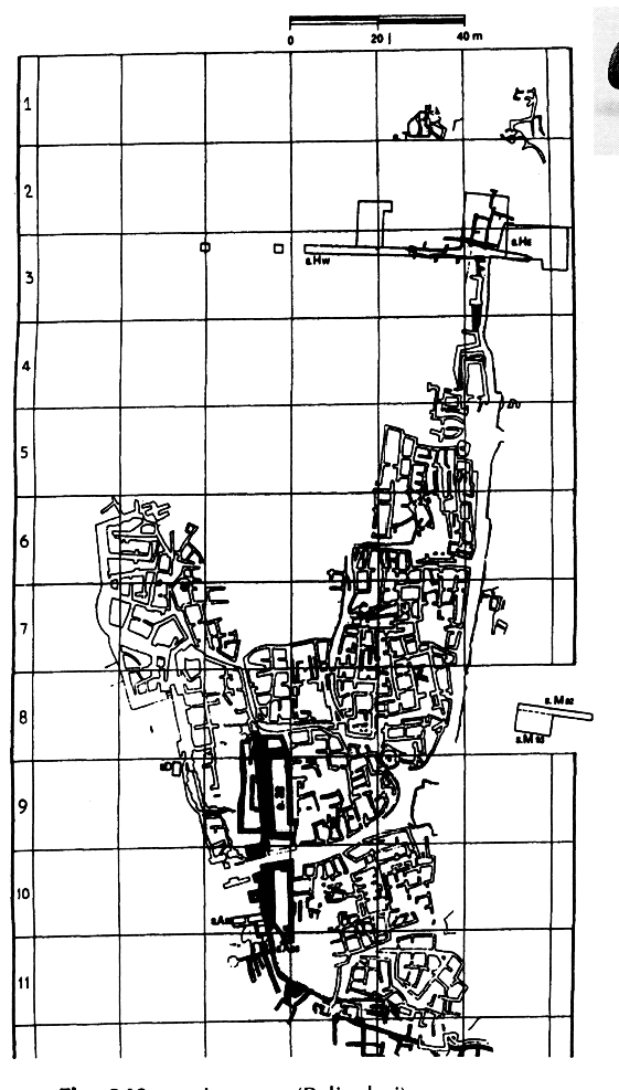 Dans le secteur Nord, l'extension de la tranchée H/Ouest, ouverte en 1993 (v. BCH 118 [1994] Chron., p. 781), a montré que le mur qui semblait marquer la limite de l'habitat appartenait en fait à une maison de la Période Verte ; elle a d'autre part révélé les restes d'un second mur, conservé sur une seule assise et datant apparemment des phases les plus récentes (Période Brune ?). La fouille a aussi été poursuivie dans la tranchée H/Est, amenant la découverte de structures comparables à celles du secteur Sud-Ouest de la muraille : l'une d'elles, orientée Nord-Sud, au bord de la falaise, a toutes les apparences d'un mur de fortification ; une autre, d'orientation Est-Ouest, semble délimiter l'agglomération de la Période Bleue, qui se développa vers le Nord. Un troisième sondage (T), ouvert un peu plus au Nord dans l'espoir de mieux définir la phase ancienne de la Période Bleue, a recoupé, sous un mur de maison de la Période Verte, un épais dépôt qui rappelle les « dépotoirs hors les murs » ; rien, dans le matériel de ce dépôt, n'est antérieur à la phase tardive de la Période Bleue.
