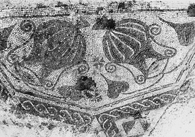 La fouille de la villa d'Aggista, au Nord du nome de Serrès, s’est poursuivie en 2000. Le sol de mosaïque a été dégagé sur 45 m2 (pour une surface totale de 165 m2). Sur la partie conservée, on constate un décor géométrique aux motifs variés et des canthares renversés desquels partent des tiges de lierre dans les écoinçons. Les couleurs utilisées sont le jaune, le bleu, le blanc, le rouge.