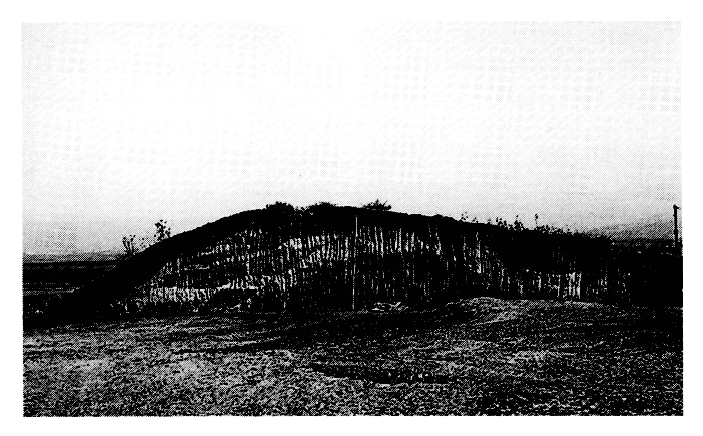 En 1993 un cinquième tumulus (E), situé au Nord-Est des quatre précédents (v. BCH 119 [1995] Chron., p. 976), a fait l'objet d'une fouille de sauvetage. D'un diamètre de 40 m et d'une hauteur de 4 m, il est formé autour d'un noyau primitif en terre brune de 12,50 m de diamètre (fig. 1). Ce dernier recouvrait une tombe à ciste de construction soignée, dont la dalle de couverture (brisée) portait les traces de cinq bûches carbonisées (fig. 2) et les fragments d'une coupe à vernis noir à décor estampé (fig. 3). Quoique pillée, la tombe a livré des vases à vernis noir — dont un askos orné d'une tête de méduse en relief (fig. 4) et deux lécythes blancs (fig. 5) qui peuvent être attribués à l'atelier du Peintre des Roseaux. L'ensemble du matériel date la tombe et le tumulus du dernier quart du Ve s. av. J.-C.
