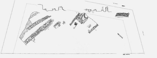 Dans la partie Sud du terrain, trois murs parallèles, sans doute des enclos funéraires, ont été dégagés. Entre deux des murs, deux sépultures pillées ont été dégagées : un fragment de sarcophage en trachyte et une ciste maçonnée avec quelques restes de squelette et de la céramique commune.
