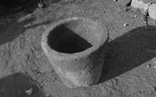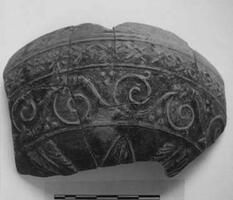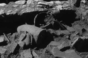 Thirteen rooms were discovered in total. Under a destruction layer inside the rooms, the tiles that were used for their construction were found. Underneath the tiles large pointed amphorae for oil and wine storage, as well as cooking pots were unearthed (Fig. 3). Many small vessels representative of the domestic pottery types of the period such as lamps, loom weights, small skyphoi, figurines etc. were also collected (Fig. 4) . The large stone vessels that were found are indicative of the household activities that were taking place inside the building (Fig. 5) . A significant find of the excavation is a room that was used as a wine press, at least during the first phase of the building (Fig. 6).