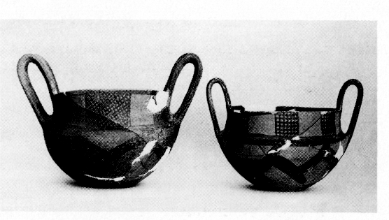 Le premier (rue Kolokotroni), proche de celui dans lequel on avait déjà fouillé une centaine de tombes en 1986 (v. BCH 117 [1993] Chron., p. 833), en recelait cinq, dont une tombe à chambre qui connut deux phases d'utilisation (protogéométrique, classique) et a livré un abondant mobilier : des vases, protogéométriques pour la plupart (fig. 111), plus d'une centaine d'objets en métal (bijoux, armes), des bobines en terre cuite, des perles et douze monnaies. De l'époque classique date probablement une petite structure circulaire qui contenait des vases et les ossements d'un cheval.
