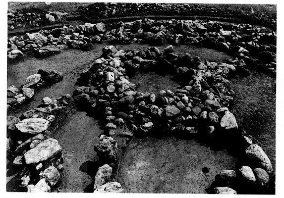 Le tumulus Β (dimensions actuelles : 20 x 19 x 3,10 m), semblable au précédent, renferme aussi une tholos dépourvue d'entrée (diam. 2,35 m) mais située au centre de la construction (fig. 1), entourée de quarante-trois fosses à incinération, deux sépultures en jarres et vingt-cinq inhumations d'enfants. Ces dernières se trouvent pour la plupart sur le pourtour du tumulus. Le mobilier funéraire était presque identique à celui du tumulus A.