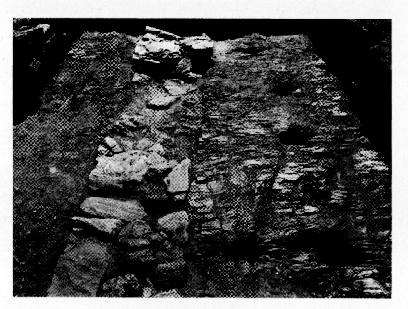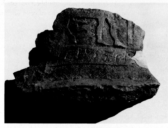 On retiendra surtout3 la fouille d'un imposant édifice orienté Nord-Sud (long. cons. 26 m) datant du Géométrique Récent. Le long du mur Ouest, une série de cavités circulaires creusées dans la roche naturelle, à intervalles réguliers (0,50 m env.), témoigne sans doute de l'existence d'un péristyle (fig. 154). La découverte, près de celui-ci, d'un fragment de pithos à reliefs (centaure) et inscription dédicatoire, daté du milieu du VIIe s. (fig. 155), confirmerait la fonction sacrée du bâtiment. À l'Ouest, la fouille a mis au jour un grand nombre de fosses taillées dans la roche, probablement en relation avec l'utilisation de l'édifice ; au Nord, un second édifice présentant deux états (Géométrique Récent, tardo-classique) et qui devait avoir, lui aussi, un caractère sacré si l'on en juge par la présence de skyphoi à vernis noir portant l'inscription IE sur la base – un poids en bronze inscrit Απόλλωνος Δηλίο, décoré d'une tête de bélier en relief, suggère du reste l'existence d'un sanctuaire classique d'Apollon Délien. Au Nord-Ouest, on a mis au jour une structure semi-circulaire en pierres contenant des ossements brûlés et des nodules de charbon : il s'agit probablement d'une eschara. On signale enfin la découverte d'un bâtiment allongé constitué de deux pièces, qui a livré de la céramique commune et de la verrerie, des lampes, des monnaies de bronze classiques et tardo-romaines, des débris de faune et divers objets (meule, moules de lampes, fragments de pithoi) attestant des activités artisanales.