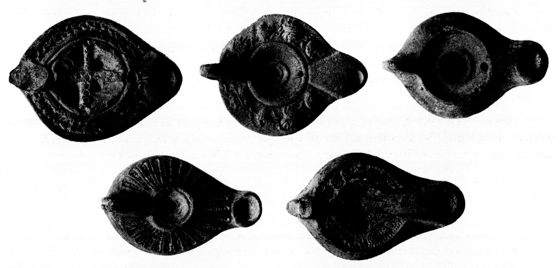 3) Nécropole. — On a fouillé un vaste cimetière (terrain Karamolengou), mettant au jour trois chambres funéraires, trente-quatre tombes en fosse à parois construites ou enduites de mortier, orientées Est-Ouest et disposées en deux couches successives, une tombe à ciste, plusieurs sépultures en jarre et une construction très ruinée qui semble avoir servi d'ossuaire. Parmi le mobilier, on mentionne des vases en verre, de la céramique commune, des lampes (fig. 169) et des objets en métal, surtout des accessoires de vêtements. Bien que la nécropole date du Ier au VIIe-VIIIe s. ap. J.-C, un amas d'offrandes funéraires (figurines et tessons) témoigne de l'occupation du cimetière dès l'époque hellénistique. AD 48 (1993) [1998] B'2, p. 439-444 ; 49 (1994) [1999] B'2, p. 690-695 [E. Géroussi].