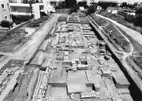À l’angle des rues Makrygianni et Ironda, la fouille du terrain Mania a livré un segment du rempart oriental de la ville et des vestiges d’édifices de l’époque romaine tardive.