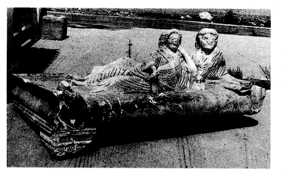 On a d'autre part repris, à faible distance à l'Ouest du port, l'exploration du terrain de l'Office des Télécommunications (OTE), où avait été découvert, deux ans plus tôt, un lit funéraire en marbre d'époque romaine (fig. 1). La fouille a fait apparaître les restes de deux monuments funéraires à gradins d'époque romaine et ceux d'un mur de fortification.