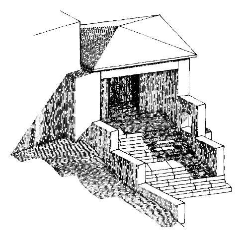 L'étude du propylon romain du sanctuaire a, d'autre part, suffisamment progressé pour que l'on puisse en proposer une restitution graphique (fig. 1).