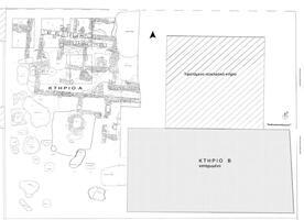 A Hellenistic pit (Pit A), two Archaic ones (Pit ΚΓ and ΚΔ) as well as a modern one were found; An earthen floor (Floor α’) was also uncovered at the NW part of the building. At the NW part of the property (where the deconstruction of the remains was going to take place) a new pit (Pit ΛΒ) dating to the Early Classical period was discovered. The partially preserved wall foundations of potentially Archaic buildings were also removed (Walls 19, 20, 25, 28, 32).