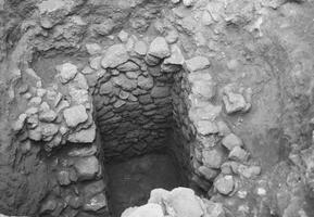The excavation of the large refuse pit ΙΖ continued but the bottom was not reached. However, it was ascertained that the pit was opened at the spot of a destroyed built well (Well 2), after the destruction and backfilling of the latter (Fig. 3). Pit ΙΖ (Fig. 4) contained a large concentration of pottery, mainly Hellenistic and Early Roman, with a few Classical, Archaic and Geometric sherds being present. Fragments of vessels of various shapes and sizes were collected (e.g. amphorae, cooking pots, lids and pedestals etc), along with other finds such as as tiles, loom weights, a column base etc. Only a few animal bones were found. Southwest of the well, an irregular circular opening (Opening 3) was excavated. It was very deep and its bottom was not reached. It also contained pottery, with painted vessels of the mid 6th-early 5th century BC and fragments of painted tiles being notable. It seems that some of its contents were discarded during a building phase that was slightly earlier than that of the Buildings A and B.