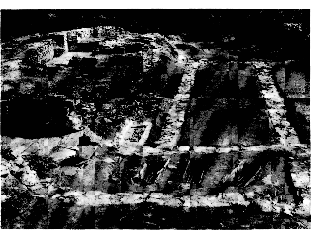 La 12e EBA a poursuivi en 1987 les fouilles de la basilique paléochrétienne à trois nefs (fig. 81-82), mise au jour à proximité de la route nationale Thessalonique-Kavala, à 50 m au Nord-Est de la source « Kaïnartza » (cf. déjà BCH 112 [1988], Chron., p. 660). Dans la couche de destruction, on avait creusé quatre tombes à ciste : trois se trouvaient dans le narthex, la quatrième, ornée de peintures, où le défunt portait trois croix de bronze, dans l'angle Nord-Ouest de la nef centrale. Deux autres tombes étaient couvertes de plaques inscrites : ⴕ Κοιμιτίριον | του ε(ι)οφ(ι)λ(εστάτου) Στε|φάνου πρ(ε)σβ(υτέρου) οσ|τις επ<ε>ιβουλεύ|σει, δόσι λόγον | Θ(ε)ω όδε κ(αί) εν ημέρα | κρίσεος ⴕ (fig. 83).